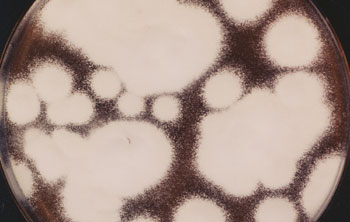 Vom Fuß- zum Nagelpilz Nagelpilz entwickelt sich häufig aus einer nicht oder nicht ausreichend behandelten Fußpilzerkrankung, da er im Wesentlichen durch die gleichen Erreger verursacht wird. Dies sind überwiegend Dermatophyten, insbesondere Trichophyton rubrum und Trichophyton mentagrophites, der neuerdings auch Trichophyton interdigitale genannt wird (Abbildung). Bei mehr als drei Viertel aller Nagelpilzfälle handelt es sich um eine distolateralte subunguale Onychomykose. Bei diesem klinischen Typ dringen die Erreger ausgehend von einer Infektion der umgebenden Haut in die seitlichen vorderen Anteile der Nagelplatte ein und dehnen sich dabei meist entgegen der Wachstumsrichtung des Nagels aus. Später kann sich die ganze Nagelplatte gelblich verfärben, verdicken und zerbröseln. Wenn auch die Matrix, die Region, in der die Nagelplatte gebildet wird, vom Pilz befallen ist, erweist sich die Therapie als besonders mühsam, erklärte Professor Korting. Doch bereits die Diagnose der Erkrankung erfordert einigen Aufwand. Die sichtbaren Zeichen rechtfertigen zwar einen Verdacht, doch sollte dieser vor Einleiten einer Therapie durch eine laboratoriumsmedizinische Untersuchung abgesichert und von anderen Nagelerkrankungen abgegrenzt werden. Neben der mikroskopischen Diagnostik gilt das Anlegen einer Kultur weiterhin als unverzichtbar, obwohl diese oft erst nach zwei bis vier Wochen ein Ergebnis liefert. Modernere molekulare Methoden, mit denen die Erreger innerhalb von zwei Tagen bestimmt werden können, werden zwar bereits erprobt, stehen aber noch nicht flächendeckend zur Verfügung. Langwierige Behandlung Wenn die Diagnose gesichert ist, erfolgt die Behandlung mit Wirkstoffen, die das Wachstum der Pilze unterbinden oder sie sogar abtöten. Sie können in Form von Nagellacken oder ähnlichen Zubereitungen direkt auf den Nagel aufgetragen werden (lokale Therapie) oder als einzunehmende Mittel über den ganzen Körper wirken (systemische Therapie). Die lokale Therapie verspricht nur Erfolg, wenn höchstens 70 Prozent der Nagelfläche befallen sind, manche Experten meinen sogar, es dürfe höchstens der halbe Nagel befallen sein. Bei größeren Flächen ist eine systemische Therapie erforderlich. Auf jeden Fall sei Geduld nötig, meinte Professor Korting: „Da der Nagel nur langsam wächst, muss sich jede Behandlung über mehrere Monate erstrecken.“ Dann besteht aber eine gute Aussicht, das lästige Übel los zu werden. Denn in den meisten Studien wurden mit modernen Wirkstoffen, die als Tabletten oder Kapseln verabreicht wurden, Heilungsraten von 70 Prozent und mehr erzielt. Dies gilt insbesondere für den Wirkstoff Terbinafin, der einer Meta-Analyse zufolge bei der Onychomykose stärker wirksam ist als die Wirkstoffe Itraconazol und Griseofulvin bei gleichzeitig besserer Verträglichkeit im Vergleich zu Itraconazol. Einiges spricht dafür, dass der Erfolg einer systemischen Therapie durch die zusätzliche Anwendung pilzhemmender Mittel am Nagel weiter verbessert werden kann. In einer Studie erwies sich eine solche Kombinationstherapie (Terbinafin-Tabletten plus Amorolfin-Nagellack) gegenüber der reinen Tablettenbehandlung als signifikant wirksamer. Beratung in der Apotheke Von den örtlich anzuwendenden Präparaten sind nur solche zu empfehlen, die als Arzneimittel zur Behandlung der Onychomykose zugelassen sind. Die wenigen zugelassenen Präparate unterliegen alle nicht der Verschreibungspflicht und können daher ohne ärztliches Rezept in der Apotheke erworben werden. Ihr Einsatz ist aber angesichts der notwendigen langen Behandlungsdauer von mehreren Monaten nur sinnvoll, wenn die Diagnose gesichert ist und andere mögliche Nagelerkrankungen ausgeschlossen sind. Eine Selbstmedikation der Onychomykose ohne gesicherte Diagnose ist deshalb nicht zu empfehlen. Dies sollte auch der Apotheker im Rahmen seiner Beratungstätigkeit beachten. Wird er auf die Behandlung einer vermuteten Onychomykose angesprochen, sollte er von einer Selbstmedikation abraten und den Betroffenen auf die Notwendigkeit der Diagnosesicherung, insbesondere durch den Hautarzt als Spezialisten, hinweisen. Bei der Auswahl eines geeigneten Arzneimittels kann der Apotheker als Arzneimittelexperte im vertrauensvollen Gespräch sowohl mit dem Arzt als auch dem Patienten mitwirken. Dabei sollte er insbesondere die Grenzen der alleinigen lokalen Therapie berücksichtigen. Wenn vom Arzt eine systemische Therapie verordnet wurde, kann er darauf hinweisen, dass durch den zusätzlichen Einsatz eines für die Behandlung der Onychomykose zugelassenen Lokaltherapeutikums die Wahrscheinlichkeit der Heilung gesteigert werden kann. Da die örtlich anzuwendenden Präparate seit Inkrafttreten des GKV-Modernisierungsgesetzes von 2004 nicht mehr von den gesetzlichen Krankenkassen erstattet werden, muss der Patient diese Mittel jetzt selbst bezahlen. Doch dies dürfte eine sinnvolle Ausgabe sein, wie Professor Korting erläuterte: „Bei den weniger schweren Formen ersparen örtlich anzuwendende Mittel die belastende und langwierige Behandlung mit Tabletten – und in schwereren Fällen helfen sie womöglich, den durch moderne innerliche Mittel greifbaren Therapieerfolg weiter zu verbessern.“