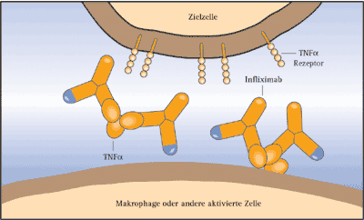 Die europäische Zulassungsbehörde EMEA (European Agency for the Evaluation of Medicinal Products) erteilte im August 1999 die Zulassung für Infliximab (Remicade®, Essex Pharma) zur Behandlung des Morbus Crohn, und zwar für die akute Erkrankung mit oder ohne Fistelbildung. Im Juni 2000 erging die Zulassung für niedriger dosiertes Infliximab zur Rheumatherapie, allerdings nur in Kombination mit Methotrexat. Für beide Indikationen muss die Voraussetzung erfüllt sein, dass schwere Krankheitsverläufe mit gesicherter Diagnose vorliegen, bei denen die Therapie mit zwei herkömmlichen Pharmaka versagt hat.