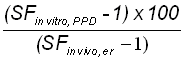 Mit dem spektralen Transmissionsgrad einer Probe im UV-Bereich (290 nm bis 400 nm) wird zunächst der in vitro Sonnenschutzfaktor SFin vitro, er errechnet (nach DIN 5031-10). Bei Ungleichheit zu dem auf der Packung angegebenen in vivo Sonnenschutzfaktor SFin vivo, er wird die Extinktionskurve über eine Konstante angepasst. Der resultierende Korrekturfaktor wird für die weiterführende Berechnung des in vitro PPD-Schutzfaktors SFin vitro, PPD, d. h. einem UVA-relevanten biologischen Endpunkt, herangezogen.