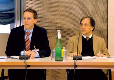An der 9. GD-Jahrestagung nahmen auch zahlreiche Fachjournalisten teil, hier im Bild Dr. Christiane Berg von der Pharmazeutischen Zeitung und Thomas Müller-Bohn, der für die Deutsche Apotheker Zeitung und für DermoTopics im Einsatz war.
